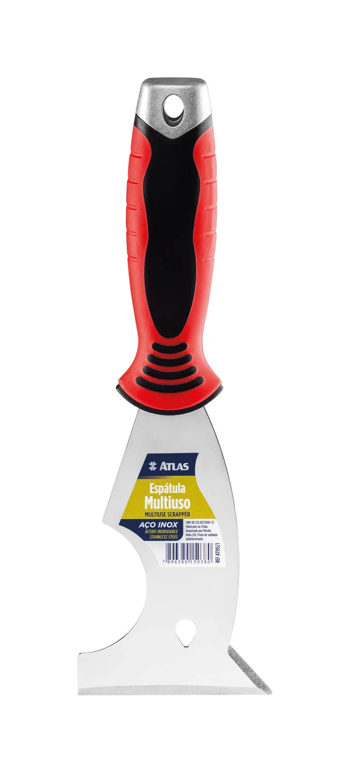 Espátula multiusos, una herramienta 5 en 1 fabricada en acero inoxidable de alta resistencia y durabilidad. Realiza cinco funciones: quitar clavos, abrir tapas de latas de pintura, raspar superficies, rasgar latas y limpiar rodillos para eliminar el exceso de pintura, agua o disolvente.